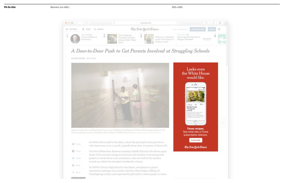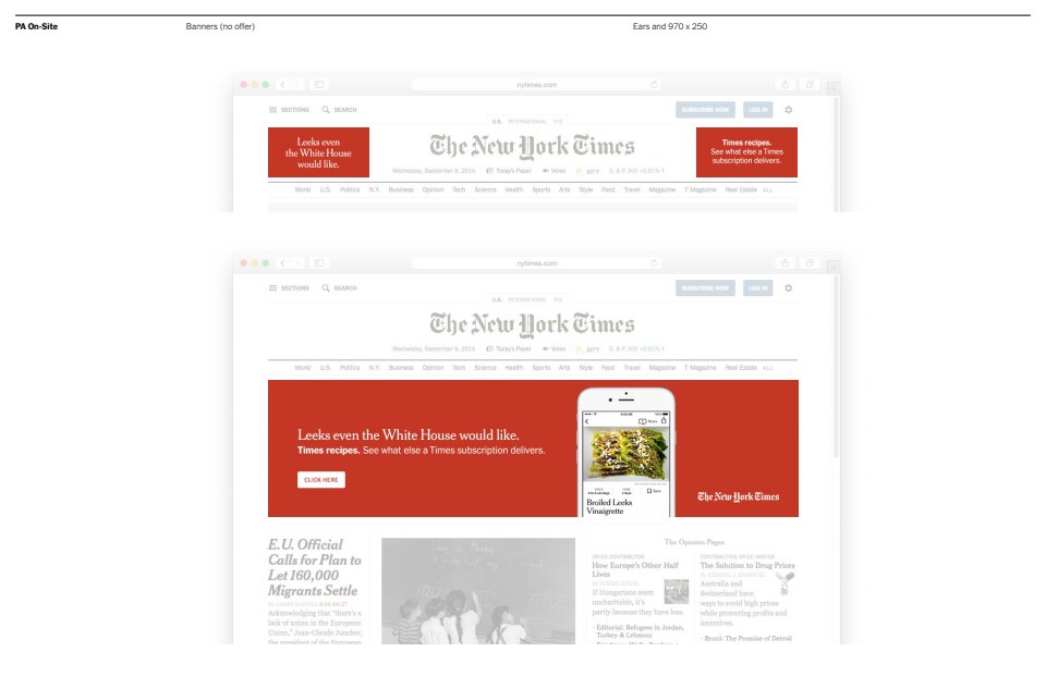 After this line popped into my head one night, I talked my creative director into doing a one-time banner for New York Times Cooking, using word play to achieve something never accomplished before: using leeks to make a political statement.