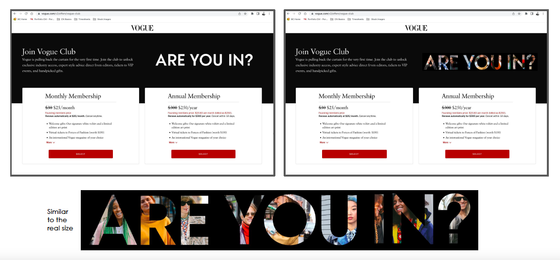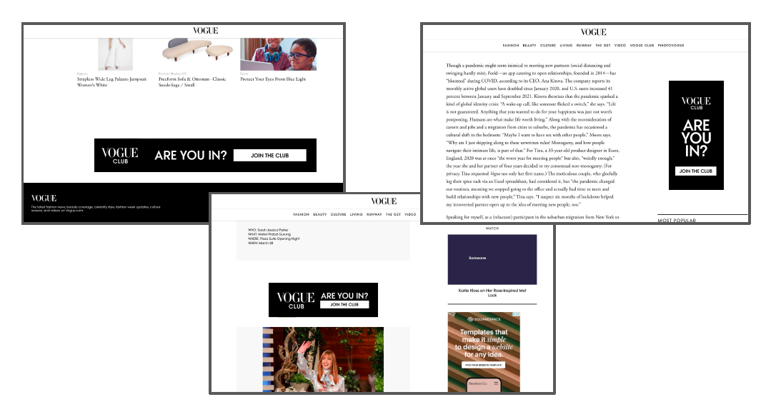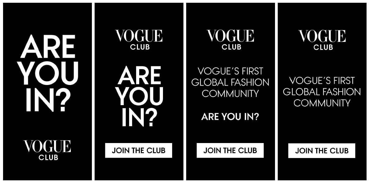 Launching Vogue’s first global fashion community presented a unique challenge. On one hand, we needed to explain what this brand extension was to Vogue’s audience. On the other, we needed to convince them the membership was worth the price. The solution I came up with addressed the audience directly, inviting/teasing them to learn more, while at the same time implying, “whatever this is, I don’t want to miss out on it.”